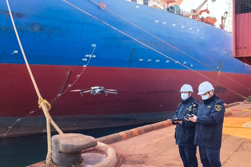 图为:海关关员操作无人机进行水尺检测作业 苏群/摄