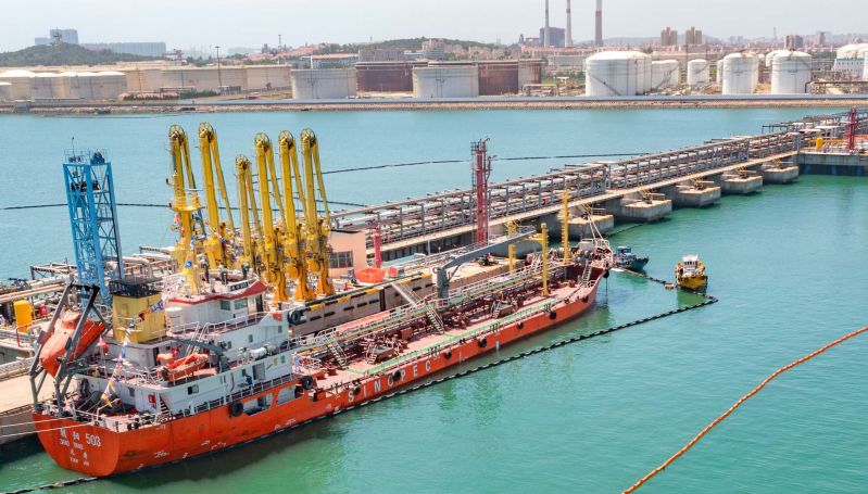 图为:加油船靠泊码头加注船用燃料油 高媛/摄