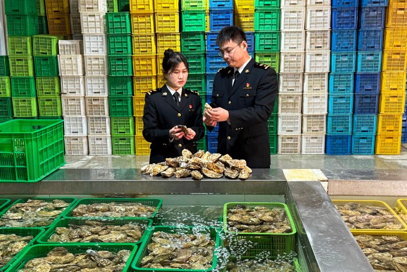 为助力乳山牡蛎顺利“出海”,威海海关早已织就一张从“海” 到“港”的全链条护航网。在养殖端,关员循着潮起潮落的规律,定期监测海域水质、核查投入品使用记录,确保每片养殖区都符合国家渔业水质标准,从源头守住“鲜”的底线;在加工端,针对牡蛎净化的微生物、重金属等关键指标,海关技术团队上门指导企业升级净化设备、优化工艺流程,既提升了净化合格率,又将净化周期缩短15%;在通关端,专门开通鲜活易腐农产品“绿色通道”,实行“即报即检、即检即放”,配合“云签发”,企业足不出户就能完成检疫证书申领,通关时效大幅提升。