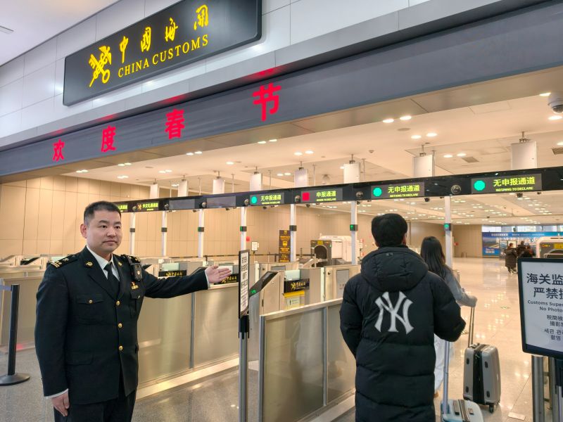 图为:关员李庆帅保障旅客通关 宋涵/摄   2月16日,除夕,青岛胶东国际机场入境大厅人流如织,年味随着归国同胞和入境旅客的步履愈发浓厚,几位身着海关制服佩戴党徽的身影在熙攘的人群中穿梭。   “请问在哪里申报?”一位女士一手牵着孩子,一手提着大包小包,焦急地环顾四周问询。关员李庆帅立即上前清晰解答,帮助这位女士填写行李物品申报单,并主动指引她们前往出口。“太感谢了!这下赶得上回老家过年的高铁了。”她的眉头渐渐舒展开来。   春运叠加春节假期,青岛海关所属青岛胶东机场海关旅检三科党支部推出特色服务举措,号召党员冲锋在服务一线。岗位上的党员关员们,化身为“政策咨询顾问”“应急协助帮手”和“多语种引导员”。   “我的肚子好像有些不舒服”。一位男性旅客面露难色地走来。关员常潇潇一边安抚旅客情绪,一边迅速组织开展卫生检疫工作,全程陪同直至旅客得到妥善照料。“看到旅客安心离开的背影,就觉得这岗站得值。”常潇潇说。   这些看似琐碎的帮助背后,是该党支部推动“党建+业务”深度融合的生动实践。该党支部坚持“预警在前、共情上前、服务靠前”,将春运保障作为发挥战斗堡垒作用的“前沿指挥部”,组织党员骨干强化入境服务和应急处置培训,确保关键时刻党员顶得上、服务做得暖。   “支部党员都主动请缨,要求加入志愿服务。”党支部书记魏珊介绍,“我们把组织优势延伸到服务一线,这不仅是优化监管流程的尝试,更是将国门治理效能转化为具体可感的一言一行。”   窗外,起降的航班载着游子归家的期盼;窗内,那抹温暖的“红色”持续闪亮。春节假期期间,旅检现场日均提供各类服务超百次,覆盖中、英、韩等多语种需求。关员们用一句句耐心地解答、一次次主动地援手,将守国门促发展的职责使命,细化成国门线上的问候与守护。(刘怡煊/文)